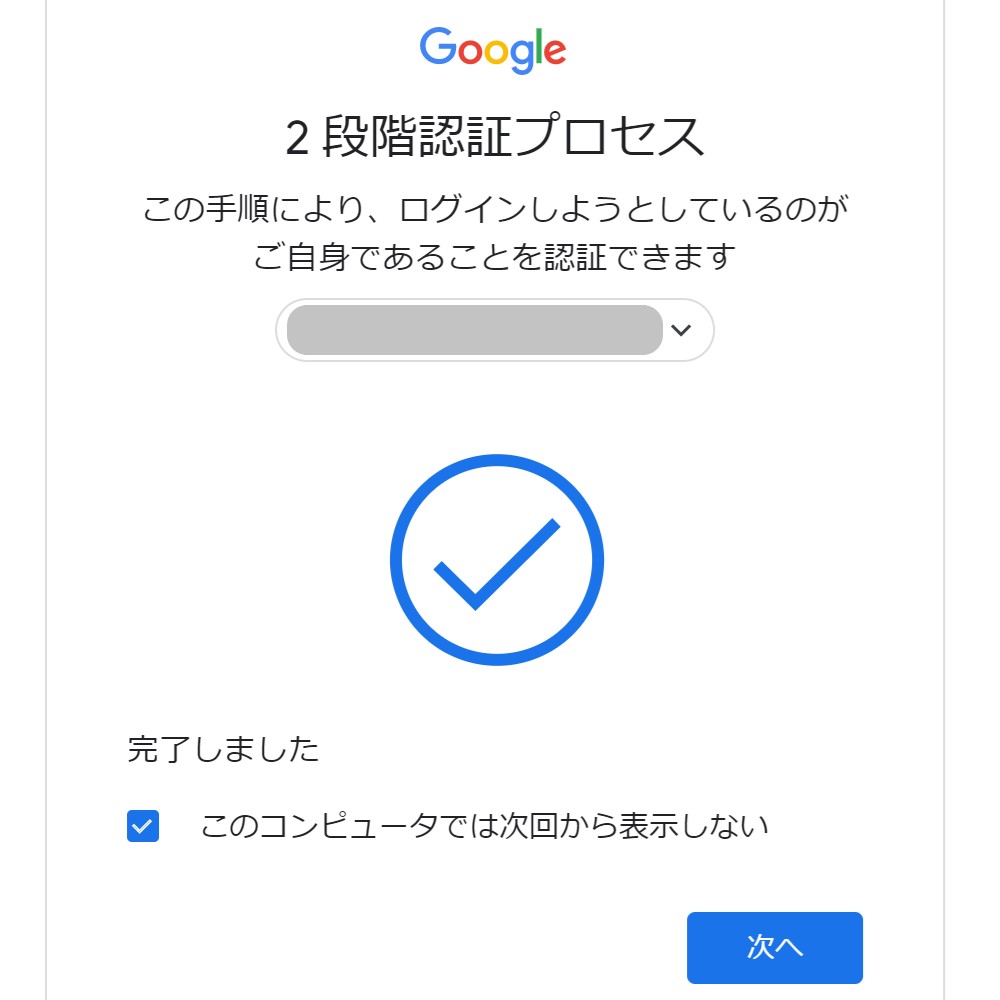 いかがでしょうか。結構簡単にFIDO U2Fを体感することができますよね。これでアカウントのセキュリティ対策もばっちり、なのですが、正直あまり使う機会がありません。それは、Google認証完了時に「このコンピュータでは次回から表示しない」を選択することで二段階認証が不要になってしまうからです。また、二段階認証が行われる際も二段階認証の手段がSMS認証やGmailアプリで行うなど様々あるため、わざわざセキュリティキーを持ち歩く必要が感じられません。やはり、今はセキュリティを重視したい法人向けなのかもしれません。